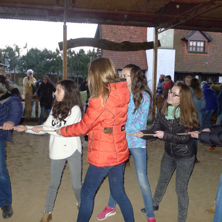 Students were in the medieval castle and tried to be heroes. They took part in sport competitions and tried to find Maths in :jumping in bags, dragging rope and archery.